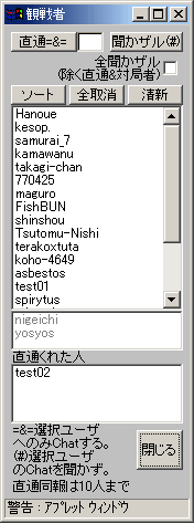 - そのため、観戦者ウィンドウに直通くれた人を表示して、すぐ選択可能にしました。