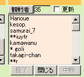 - 観戦者ボタンを押して表示する観戦者ウィンドウの下段に、